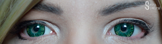 The color is AH-mazing! It's like a huge ball of sparkly candy, the eyes of an otherwordly being, a glittery sea's surface... you get the idea. It's really magical and ethereal at the same time. I'm in love with the design and the color, the green is immensely pretty, deep and has a depth I can't even begin to put into words! There's a thin limbal ring framing the lenses and it brings an 'anime' look along with making the lenses appear bigger.